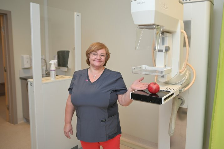 Rozā lentīti ikdienā nēsā arī smaidīgā un atsaucīgā Ventspils poliklīnikas radiologa asistente Inga Paparde, kura ir pārliecināta – mamogrāfija ir viena no efektīvākajām metodēm krūts audu izmeklēšanā, īpaši krūts vēža un citu slimību agrīnai diagnostikai. Regulāra skrīninga veikšana ļauj pārliecināties par savu veselības stāvokli. Ja pārbaudē tiek konstatētas kādas izmaiņas, iespējams veikt papildu izmeklēšanu un uzsākt savlaicīgu ārstēšanu. Šobrīd Ventspils poliklīnikā mamogrāfijas izmeklējums pieejams aptuveni divu nedēļu laikā. Uzaicinājumu veikt krūts mamogrāfiju bez maksas Veselības ministrijas Nacionālais veselības dienests (NVD) reizi divos gados izsūta sievietēm vecumā no 50 līdz 68 gadiem. Dodoties uz valsts apmaksāto pārbaudi, līdzi jāņem NVD vēstule, kas kalpo kā nosūtījums uz izmeklējumu. Uzaicinājums uz bezmaksas pārbaudi ir derīgs trīs gadus, tomēr NVD aicina pārbaudi veikt trīs mēnešu laikā pēc uzaicinājuma saņemšanas. Tāpat Ventspils poliklīnikā ar digitālo mamogrāfijas iekārtu tiek veikti diagnostiskie izmeklējumi, kad ārsts tos nozīmējis, jo radušās aizdomas par audzēju, kā arī kontroles nolūkos, ja iepriekš bijušas kādas problēmas.